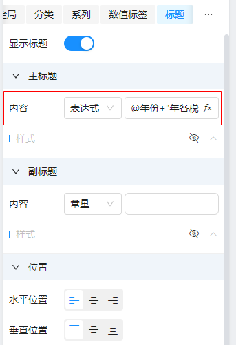 2)设置图表标题为“=@年份+”年各税务部门营业税和企业所得税情况””,如下图: